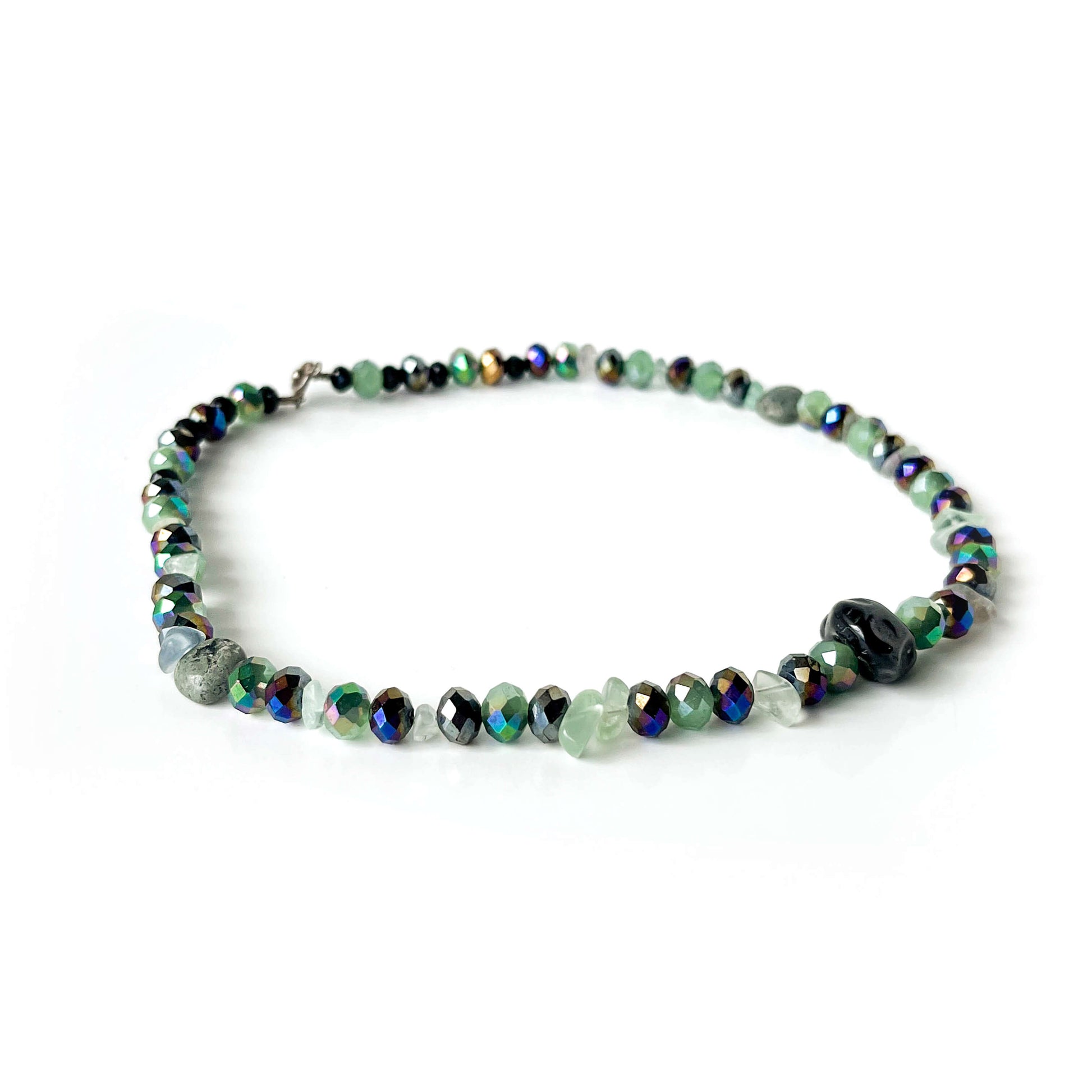 Material: green and black agate, aventurine, faceted Austrian crystal