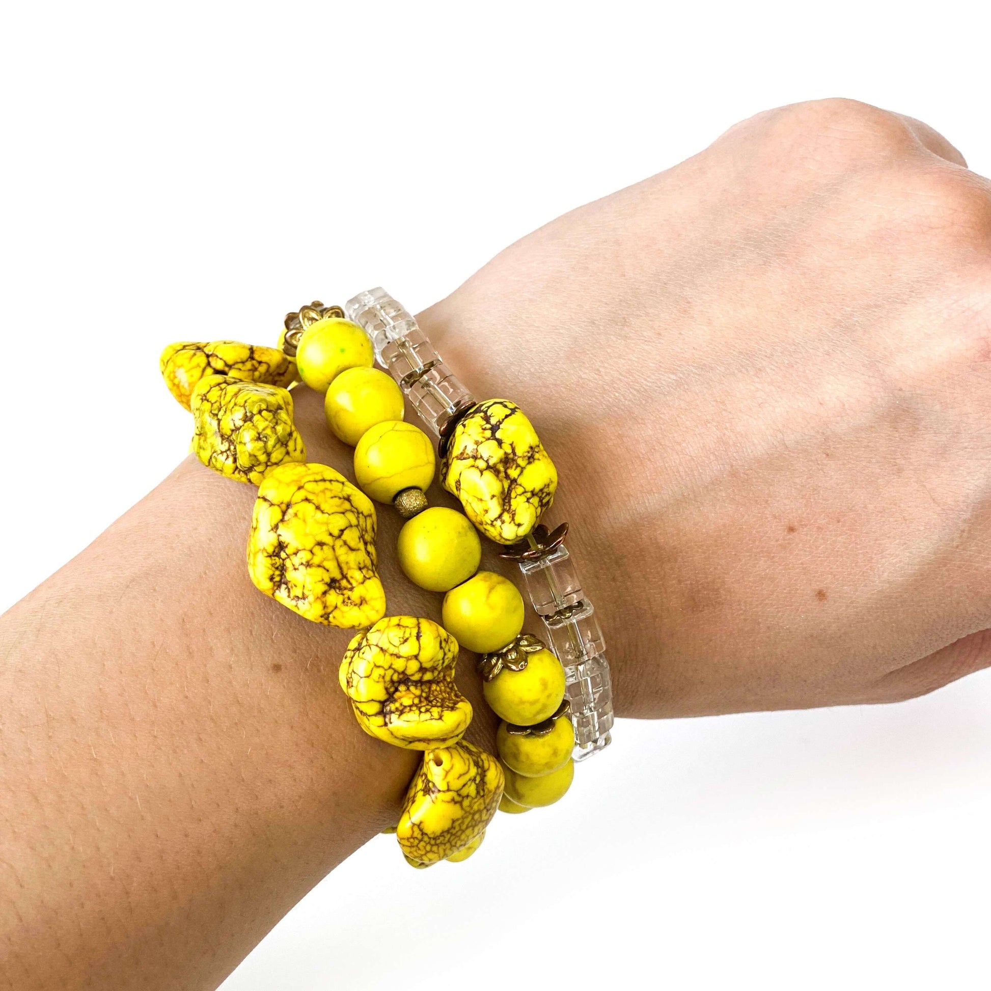Natural stones: rock quartz, yellow howlite